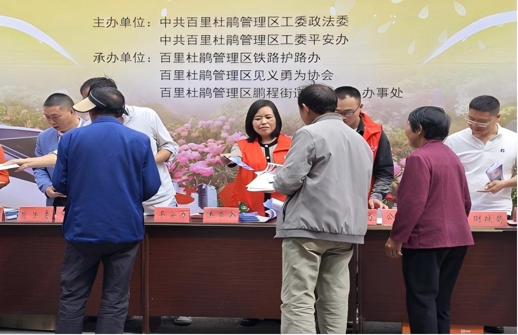 為充分調(diào)動(dòng)廣大群眾參與平安建設(shè)的主動(dòng)性,大力弘揚(yáng)見義勇為精神,營造平安建設(shè)人人有責(zé)、人人盡責(zé)、人人享有的濃厚氛圍,切實(shí)提升安全防范意識(shí)和自護(hù)自救能力。近日,貴州省畢節(jié)市百里杜鵑管理區(qū)工會(huì)利用趕集日組織志愿者在鵬程街道在拱社區(qū)參加平安建設(shè)暨鐵路護(hù)路和見義勇為宣傳活動(dòng)。