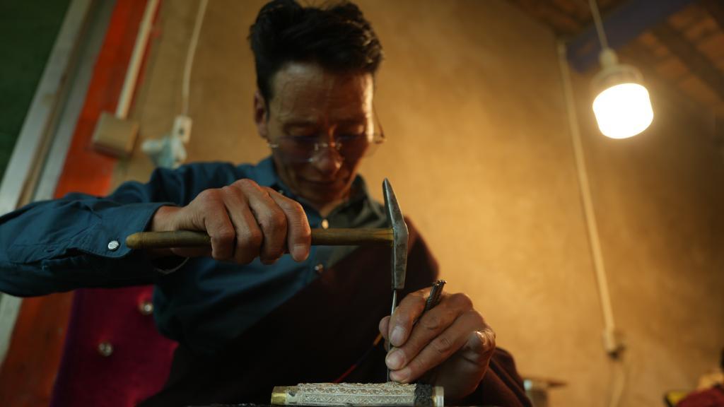 青海玉樹安沖鄉(xiāng)的安沖藏刀制刀匠人江洛,從13歲起開始學(xué)習(xí)制作藏刀。