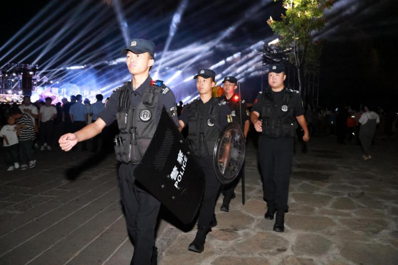 夜幕降臨,華燈點(diǎn)亮貫城河,平遠(yuǎn)古鎮(zhèn)與大府頭廣場游人如織。裝備齊整的民警、英姿颯爽的特警,成為熙攘人潮中最安心的存在?!拔覀儽仨毘B(tài)化巡邏,確保群眾第一時間能找到警察?!彪p堰派出所民警余莎的話語,道出了“流動管家”的日常。