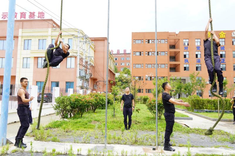 在隨后的大練兵活動(dòng)中,特警隊(duì)員們開(kāi)展了多項(xiàng)科目的訓(xùn)練?!邦A(yù)備,開(kāi)始!”教官一聲令下,兩名特警隊(duì)員如離弦之箭,猛地蹬地起躍,雙手緊扣垂下的繩索,腰腹與雙臂協(xié)同發(fā)力,如同矯健的壁虎迅速向上攀爬,展現(xiàn)出卓越的體能和攀爬技巧。