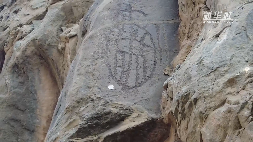 在石壁上的一幅人面像上,存在橫豎相交的線條。賀蘭山巖畫管理處黨組成員、副主任張建國介紹,古代人為了表達(dá)對(duì)自己失去親人的悲哀,會(huì)在臉上用石頭畫成這種橫豎相交的線條,表示鮮血噴涌而出,以“黥面”來表達(dá)對(duì)親人的紀(jì)念和懷念。