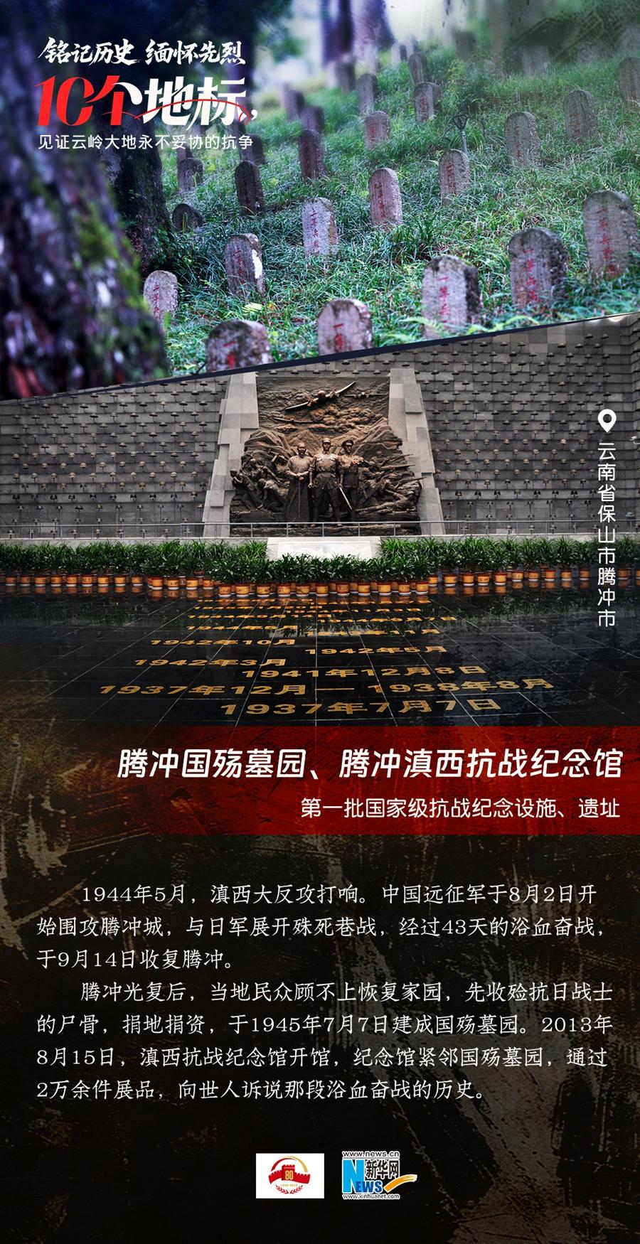 80年過去,曾經(jīng)的戰(zhàn)場硝煙雖散,但英氣永存。在國務(wù)院公布的前三批國家級抗戰(zhàn)紀(jì)念設(shè)施、遺址名錄中,云南省共有10個,分別為騰沖國殤墓園、騰沖滇西抗戰(zhàn)紀(jì)念館,龍陵抗日戰(zhàn)爭紀(jì)念館,國立西南聯(lián)合大學(xué)舊址,抗戰(zhàn)勝利紀(jì)念堂,松山戰(zhàn)役舊址,南洋華僑機工回國抗日紀(jì)念碑,怒江駝峰航線紀(jì)念館,施甸縣抗日江防遺跡群,滇緬公路惠通橋,滇西抗日戰(zhàn)爭紀(jì)念碑。它們承載著國人共同的歷史記憶與民族情感,也為我們學(xué)習(xí)和傳承抗戰(zhàn)精神提供了現(xiàn)實條件。