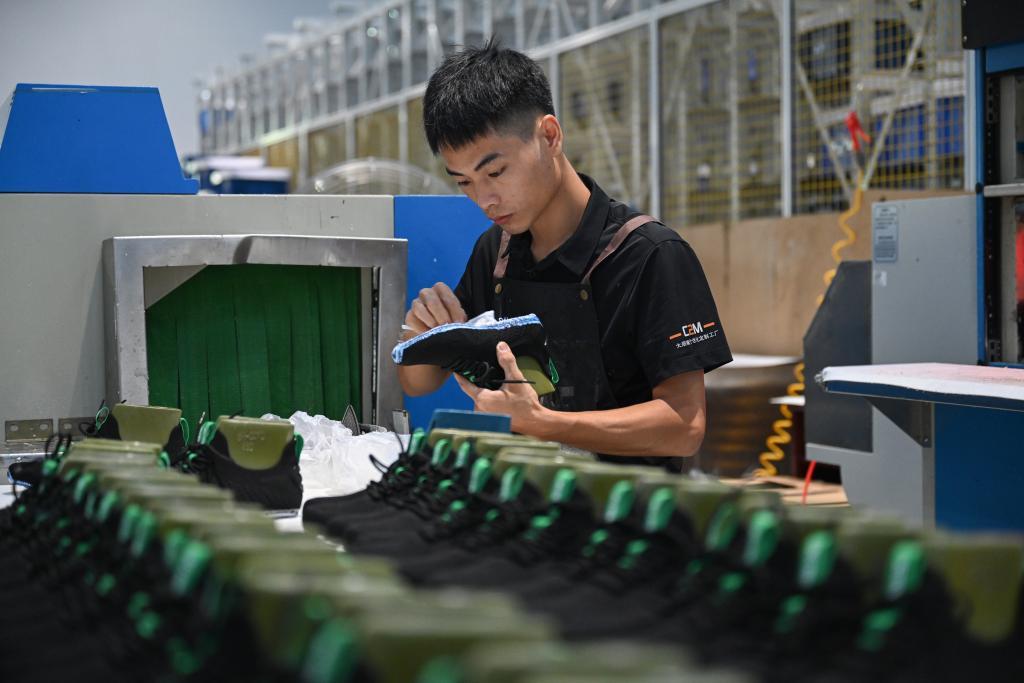 “我們引進(jìn)了全智能化飛織機(jī)、智能成型一體化生產(chǎn)線,實(shí)現(xiàn)裁斷、刷膠、成鞋整理包裝一體化,能快速提高生產(chǎn)效率?!惫努|明說(shuō)。