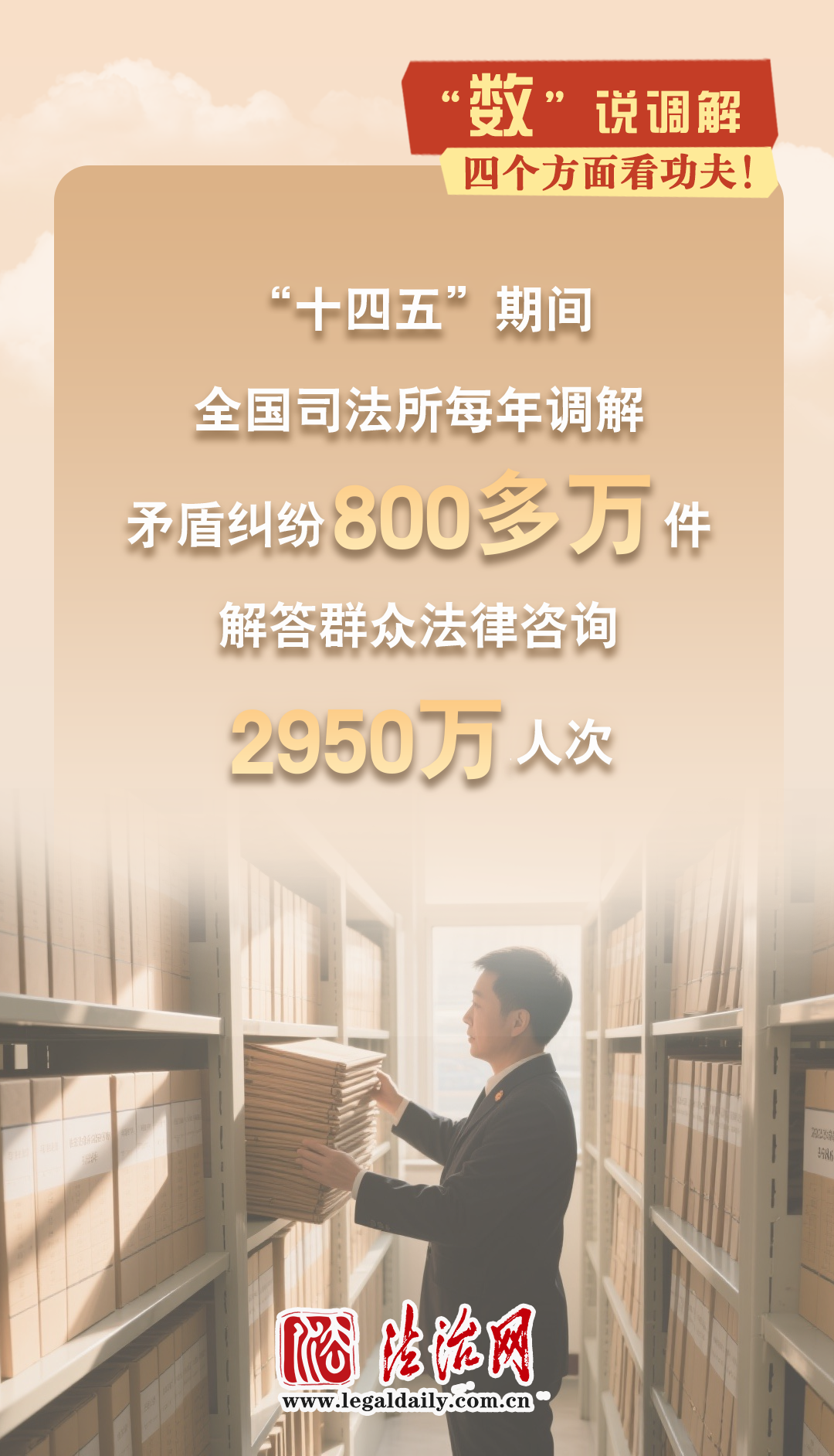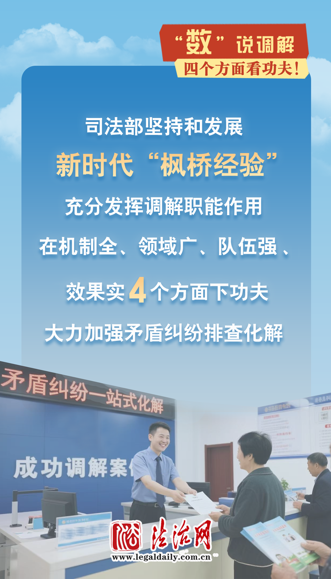 “十四五”期間,司法部堅持和發(fā)展新時代“楓橋經驗”,充分發(fā)揮調解的職能作用,在機制全、領域廣、隊伍強、效果實四個方面下功夫,大力加強矛盾糾紛的排查化解,切實保障群眾合法權益,維護社會和諧穩(wěn)定。