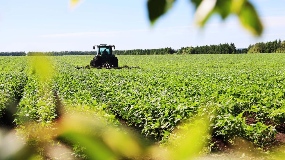 在北大荒集團黑龍江紅星農(nóng)場第一管理區(qū)有機大豆田里,搭載北斗導(dǎo)航系統(tǒng)的大馬力機車開展有機大豆二次中耕作業(yè)(2025年7月7日攝)。新華社發(fā)(侯越攝)