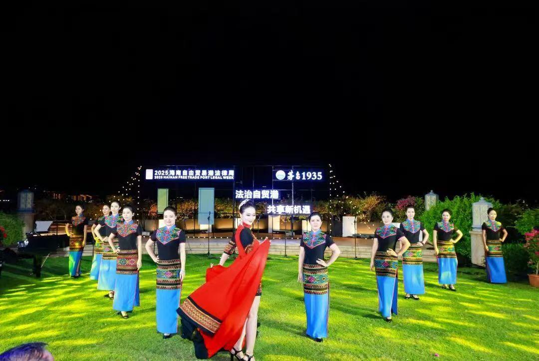 活動中還特別設(shè)置了海南省非遺展示環(huán)節(jié)。青年舞蹈家張櫻藍老師攜手海南省律師協(xié)會舞蹈隊的女律師們,為本屆法律周精心打造了原創(chuàng)節(jié)目——《黎錦旗袍秀》,將世界級非物質(zhì)文化遺產(chǎn)“黎錦”與風靡世界的中國旗袍完美融合,女律師們以優(yōu)雅的步伐,展示著穿越千年的黎錦之美。