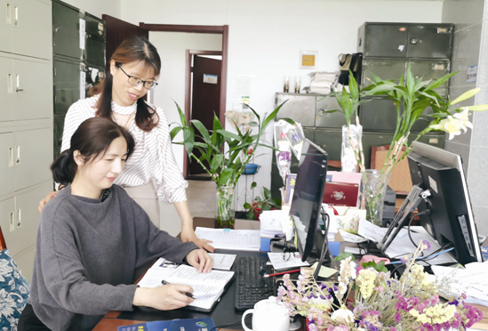 陶應(yīng)潔(左)與同事一起研究工作。