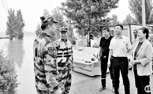 我們直接來到區(qū)委設(shè)在李莊的臨時(shí)指揮部,看到河水淹過李店橋、漫過生產(chǎn)堤,還在緩緩上漲,造成大片農(nóng)田被淹,道路被沖毀。幾乎兩天兩夜沒有合眼的區(qū)委書記王彥濤簡單介紹了搶險(xiǎn)情況,“昨天已經(jīng)征調(diào)全市公交車輛將賈魯河兩岸可能被淹的6個(gè)村莊3492戶12111人全部轉(zhuǎn)移安置到安全地帶,目前祥符區(qū)無一人被困和傷亡?!蔽蚁蛲鯊龝洷響B(tài),我們檢察干警參加抗洪搶險(xiǎn)的隊(duì)伍隨時(shí)集結(jié)、隨時(shí)聽從調(diào)遣。