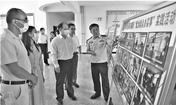 行政檢察監(jiān)督效果怎樣,人民群眾最有發(fā)言權(quán)。7月31日,全國人大代表一行來到白城市強(qiáng)制隔離戒毒所,白城市檢察院在這里建有駐所檢察官工作室。在檢察官工作室內(nèi),代表們首先被墻上的工作流程圖表所吸引,隨后詳細(xì)查閱了監(jiān)督工作清單。