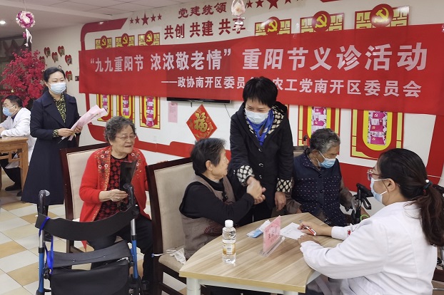 近日,天津市南開區(qū)政協(xié)與農(nóng)工黨南開區(qū)委會(huì)聯(lián)合開展“慶重陽、送健康”義診活動(dòng)。醫(yī)療小組深入南開區(qū)養(yǎng)老中心,為在院老人進(jìn)行義務(wù)診療咨詢,宣傳健康理念,講解用藥常識(shí),以實(shí)際行動(dòng)送上了節(jié)日祝福和溫暖關(guān)愛。 錢麗 李寧馨 攝