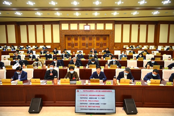 王良在主持時指出,習近平法治思想是順應實現(xiàn)中華民族偉大復興時代要求應運而生的重大理論創(chuàng)新成果,是馬克思主義法治理論中國化最新成果,是習近平新時代中國特色社會主義思想的重要組成部分,是全面依法治國的根本遵循和行動指南。要在深入學習貫徹習近平法治思想上下功夫求實效,與深入學習貫徹黨的十九屆六中全會精神結合起來,與深入學習貫徹習近平總書記關于堅持和完善人民代表大會制度的重要思想和中央人大工作會議精神結合起來,與深入學習貫徹習近平總書記對山東重要指示要求結合起來,與全面貫徹落實省委十一屆十四次全體會議精神結合起來,堅持黨對人大工作的全面領導,不斷提高政治判斷力、政治領悟力、政治執(zhí)行力。要切實把學習成效轉化為做好人大工作的實際行動,在知行合一中擔當作為,以強烈的責任感使命感扎實做好立法、監(jiān)督、普法宣傳等各項工作,努力為法治山東建設作出人大貢獻。