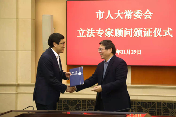 原標(biāo)題:市人大常委會(huì)舉行聘請(qǐng)立法專家顧問頒證儀式,蔣卓慶出席