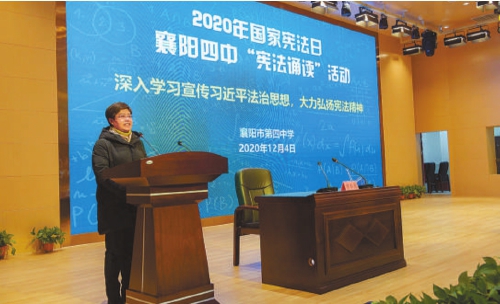 李靜在襄陽市第四中學(xué)舉辦的“憲法誦讀”活動上發(fā)言
