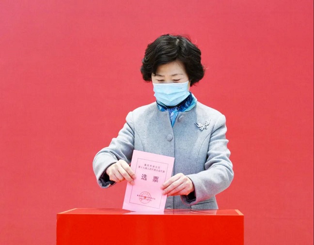 重慶市人大常委會(huì)主任張軒填寫選票。