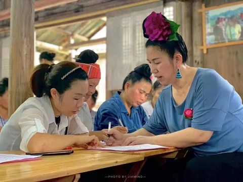 2013年,楊再美創(chuàng)立了臺(tái)江縣恒藝苗族文化藝術(shù)專業(yè)合作社,通過(guò)產(chǎn)品加工、“陽(yáng)光計(jì)劃”、“蒲公英計(jì)劃”、“雨露計(jì)劃”、“錦繡計(jì)劃”、“非遺傳承”等培訓(xùn),傳承技藝,搭建橋梁,受益婦女達(dá)30000余人次,不僅精進(jìn)了繡娘的技藝,更多地給她們樹(shù)立了脫貧致富的信心。