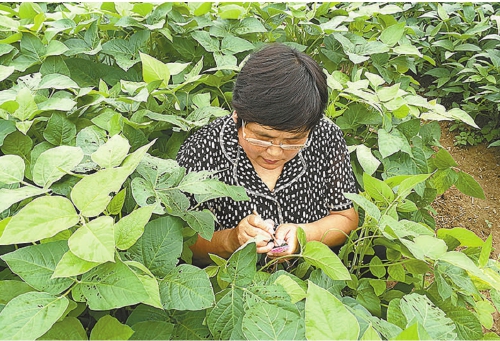 王秋玲在大豆試驗(yàn)田里做雜交試驗(yàn)