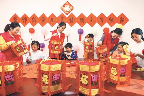 元宵節(jié)來(lái)臨之際,江西省新余市渝水區(qū)組織部分政協(xié)委員深入鄉(xiāng)村,開(kāi)展“愛(ài)伴留守兒童、情暖元宵佳節(jié)”志愿服務(wù)活動(dòng),讓孩子們開(kāi)開(kāi)心心過(guò)元宵。圖為委員們?cè)邬]山鎮(zhèn)與留守兒童在一起做燈籠、猜燈謎、玩游戲等活動(dòng)。 廖海金 攝