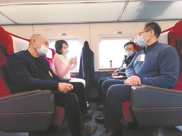 住陜全國政協委員祁志峰、任芳、張義光、陳超在赴京的高鐵上就共同關心的話題進行交流。