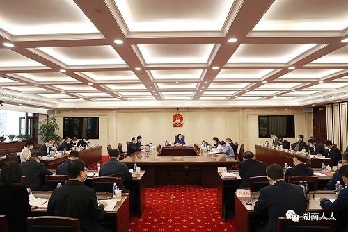 會議還研究了全國“兩會”精神和《湖南省人民代表大會常務委員會關(guān)于科學精準及時有效做好全省新冠肺炎疫情防控工作的決定》(以下簡稱決定)的貫徹落實工作,聽取了各專門委員會,常委會工作機構(gòu)、辦事機構(gòu)的工作匯報。常委會黨組成員、主任會議成員就如何更好地做好貫徹落實工作進行了交流發(fā)言。會議要求,要認真落實省委和省委書記、省人大常委會主任張慶偉的指示要求,加大對決定的宣傳力度,加強對決定貫徹落實情況的監(jiān)督檢查。堅持深學細悟,堅持務實推進,推動重點任務干一件、成一件;要緊盯目標任務,緊盯短板弱項,堅持問題導向,拿出務實舉措;要強化統(tǒng)籌協(xié)同,強化跟蹤問效,確保省委交給人大的工作任務全面落實、取得成效。