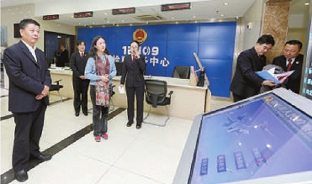 江蘇省徐州市檢察院邀請代表委員參加“走進12309,檢察服務新體驗”活動,圖為李甦雁(左三)參觀12309檢察服務中心。