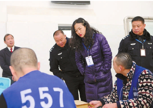 李甦雁(右三)應邀到江蘇省新沂市看守所調研刑事執(zhí)行檢察工作。