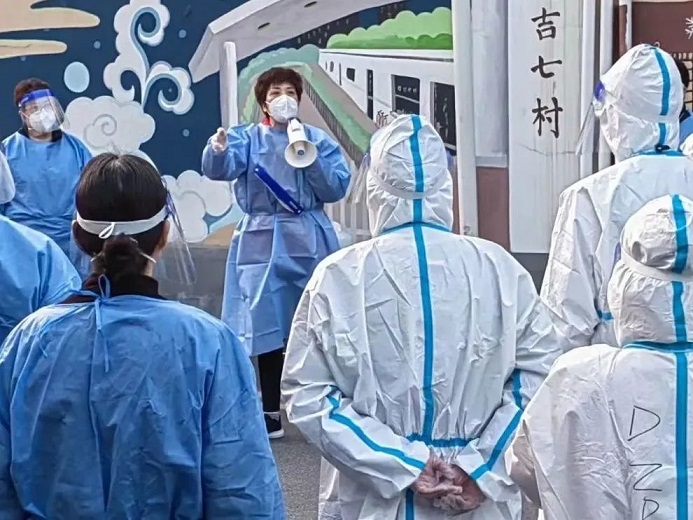 在第一次核酸檢測(cè)前,居委通宵討論檢測(cè)點(diǎn)位安排、樓棟?rùn)z測(cè)順序、人員行進(jìn)路徑、工作人員分工甚至站位,并反復(fù)實(shí)地演練流程。檢測(cè)結(jié)束后,他們又就當(dāng)天的現(xiàn)場(chǎng)情況進(jìn)行詳細(xì)討論,查找問題和不足,優(yōu)化完善工作方案和應(yīng)急預(yù)案。之后的多輪檢測(cè),這個(gè)有著5500多居民的超大核酸檢測(cè)現(xiàn)場(chǎng),每次都能做到安全、有序,這背后凝結(jié)著施菊和延七團(tuán)隊(duì)的工作智慧和辛勤汗水。