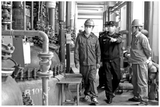 江西省上饒市開(kāi)展“進(jìn)企業(yè) 聽(tīng)心聲”活動(dòng),助力營(yíng)商環(huán)境優(yōu)化。圖為民警在轄區(qū)易制毒化學(xué)品使用單位開(kāi)展安全檢查。 CFP供圖