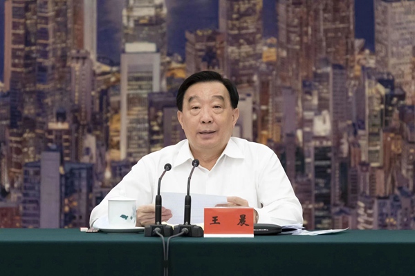 6月14日,中共中央政治局委員、全國人大常委會副委員長、中國法學會會長王晨在京出席深入學習研究闡釋習近平法治思想研討會并講話。攝影/蔣啟明