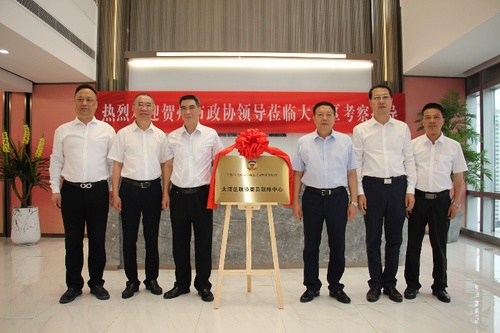 廣西賀州市政協(xié)主席陳遠明,副主席郭業(yè)山,秘書長羅巧科,市政協(xié)委員孫俊平等共同為“粵港澳大灣區(qū)政協(xié)委員聯(lián)絡(luò)中心(深圳)”揭牌。(廣西賀州市政協(xié)供圖)