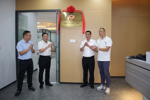 廣西賀州市政協(xié)主席陳遠明,副主席郭業(yè)山,市政協(xié)委員楊如旺共同為“粵港澳大灣區(qū)委員工作室(廣州)”揭牌。(廣西賀州市政協(xié)供圖)