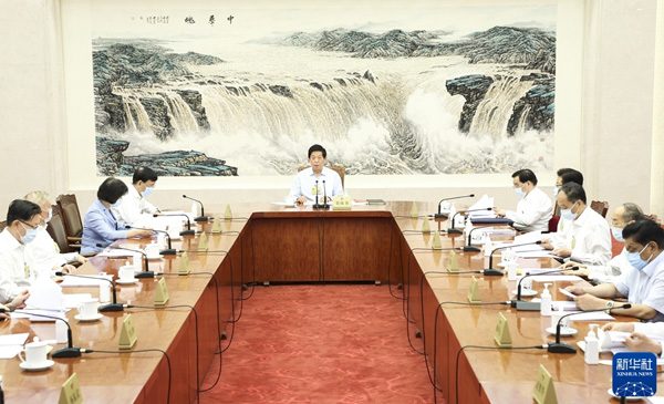 聽取有關(guān)草案和議案審議情況匯報 栗戰(zhàn)書主持會議