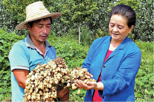 正值花生收獲季節(jié),郭建華(右)來到開封市祥符區(qū)西姜寨鄉(xiāng),與農(nóng)民一起查看花生收成情況。
