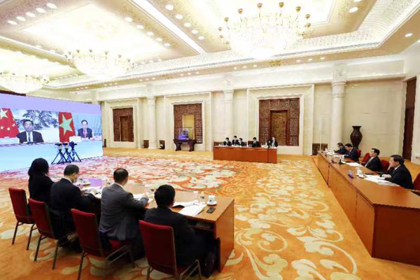 原標(biāo)題:王晨與越南國(guó)會(huì)常務(wù)副主席陳青敏舉行視頻會(huì)晤
