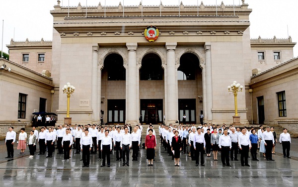 7月1日,全國政協(xié)機關在全國政協(xié)禮堂(中共八大會址)前舉行升國旗儀式,慶祝中國共產黨成立101周年。全國政協(xié)副主席兼秘書長、機關黨組書記李斌出席。全國政協(xié)副秘書長、機關黨組副書記鄒加怡主持儀式,駐會副秘書長、機關黨組成員、專門委員會駐會副主任、有關部級領導以及機關黨員代表參加。記者 田福良 攝
