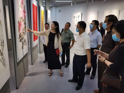 7月18日上午,廣東省廣州市天河區(qū)政協(xié)喜迎黨的二十大公益書(shū)畫(huà)展在美麗的天河公園舉行。這次書(shū)畫(huà)展主題鮮明,充滿了激情與信心,迎來(lái)各界人士駐足觀看。圖為區(qū)政協(xié)黨組書(shū)記、主席邵國(guó)明(中)引領(lǐng)大家賞析書(shū)畫(huà)作品。 記者 林儀 攝