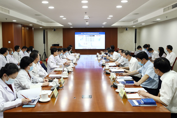 7月22日,中共中央政治局委員、全國人大常委會副委員長王晨在京就罕見病防治法治保障工作進行專題調(diào)研。這是22日下午,王晨在北京協(xié)和醫(yī)院調(diào)研并與醫(yī)療專家座談。攝影/許麟