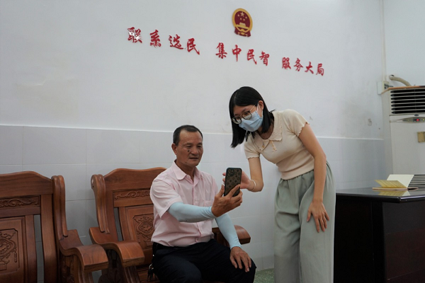 “如果能視頻直接反映就更好啦!”得知可以視頻連線駐站代表,袁沛明馬上讓袁慧英幫忙連線。