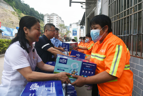 日前,廣西壯族自治區(qū)桂林市龍勝各族自治縣政協(xié)組織政協(xié)委員到縣環(huán)衛(wèi)站、縣交警大隊、桂三高速管理中心,開展“助力創(chuàng)城·政協(xié)委員送清涼”活動,看望慰問在高溫天氣下堅守崗位的一線工作者,送上礦泉水等防暑用品。吳生斌 攝
