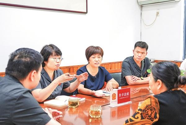“共享法庭不僅是一個(gè)物理空間,更是一個(gè)制度、一份理念;庭務(wù)主任也不只是一個(gè)職務(wù),而是一種氛圍、一份行動(dòng)。”楊國琴有自己的理解,“共享法庭就是讓越來越多人參與到普法、知法、懂法、守法的氛圍里。我特別想在‘家門口’帶動(dòng)這樣的法治氛圍?!保ㄓ嘟ㄈA 潘墨欽)