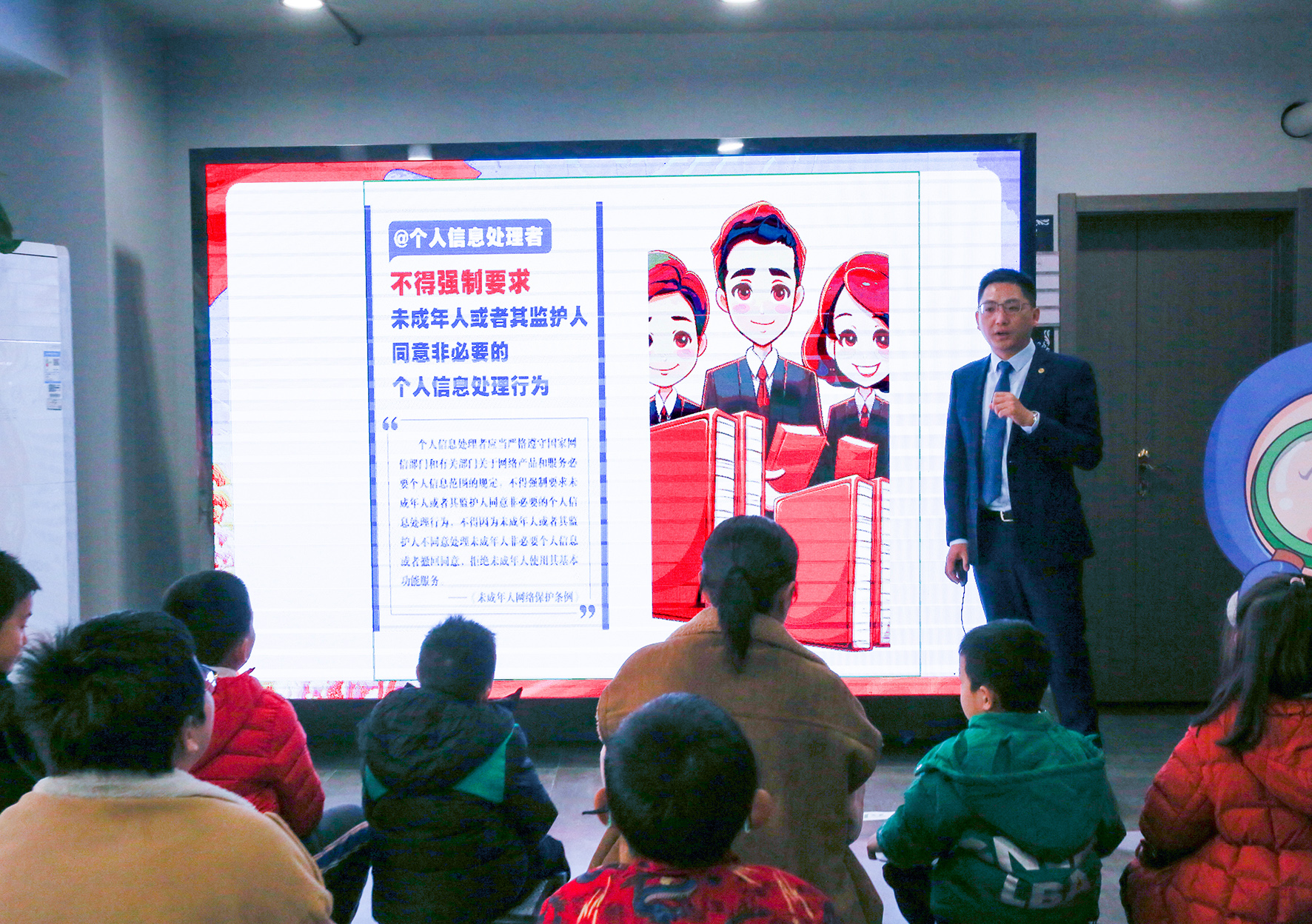 11月26日,江蘇省如皋市委網(wǎng)信辦聯(lián)合如城街道組織人員走進(jìn)花園社區(qū)書屋,舉辦“e”起護(hù)苗未成年人網(wǎng)絡(luò)安全教育課堂活動(dòng)。圖為律師為家長和學(xué)生解讀《未成年人網(wǎng)絡(luò)保護(hù)條例》。