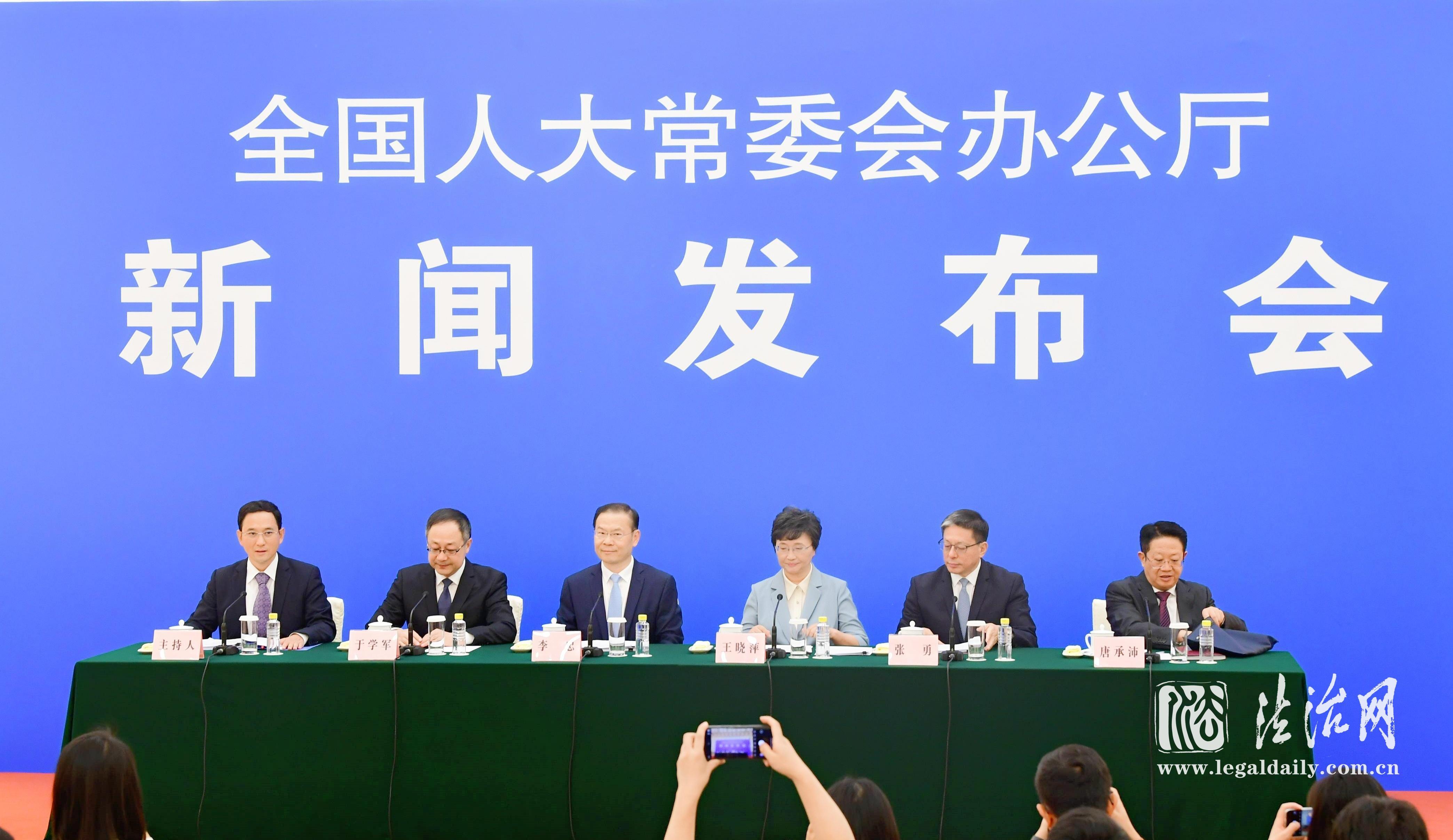 9月13日下午,全國(guó)人大常委會(huì)辦公廳舉行新聞發(fā)布會(huì)。圖為新聞發(fā)布會(huì)主席臺(tái)。張峻銘 攝