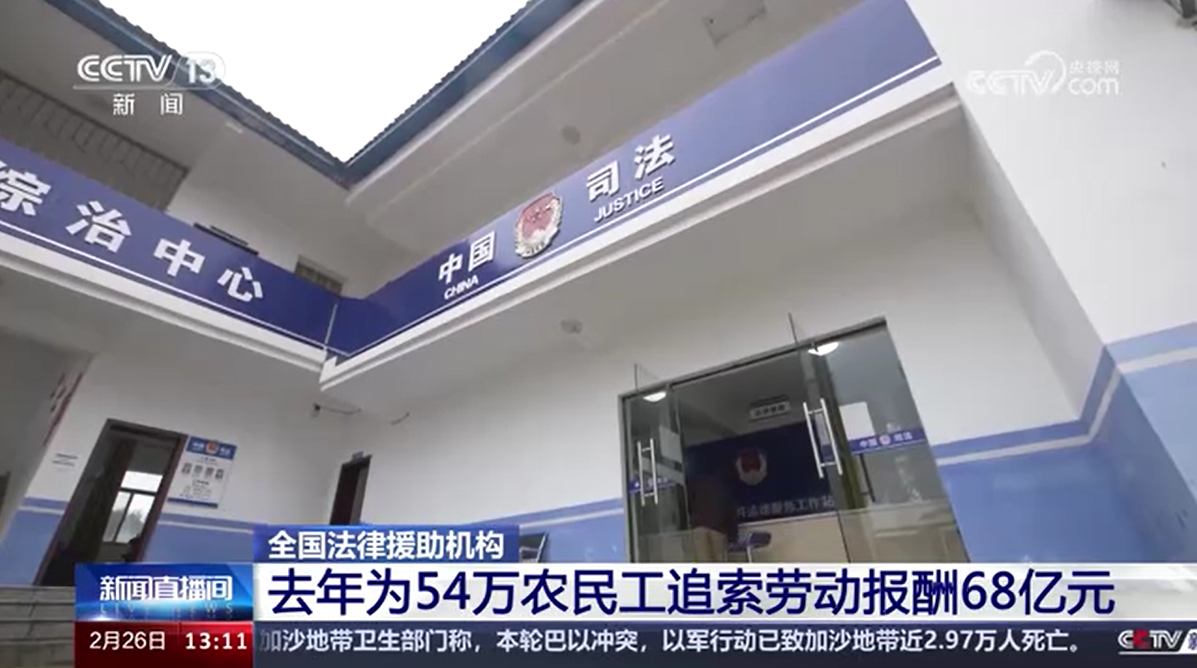 全國法律援助機構 去年為54萬農民工追索勞動報酬68億元