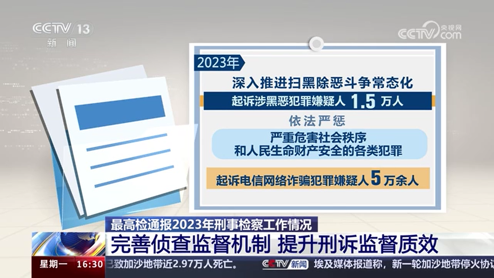 最高檢通報2023年刑事檢察工作情況 完善偵查監(jiān)督機制 提升刑訴監(jiān)督質效