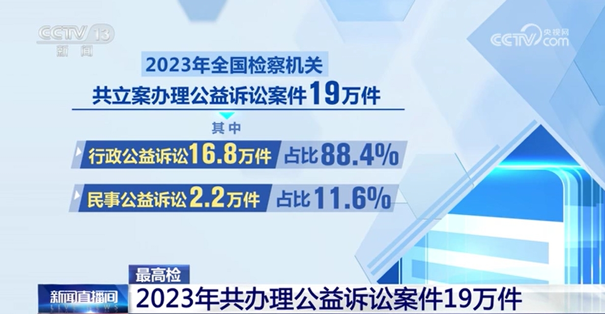 最高檢 2023年共辦理公益訴訟案件19萬(wàn)件