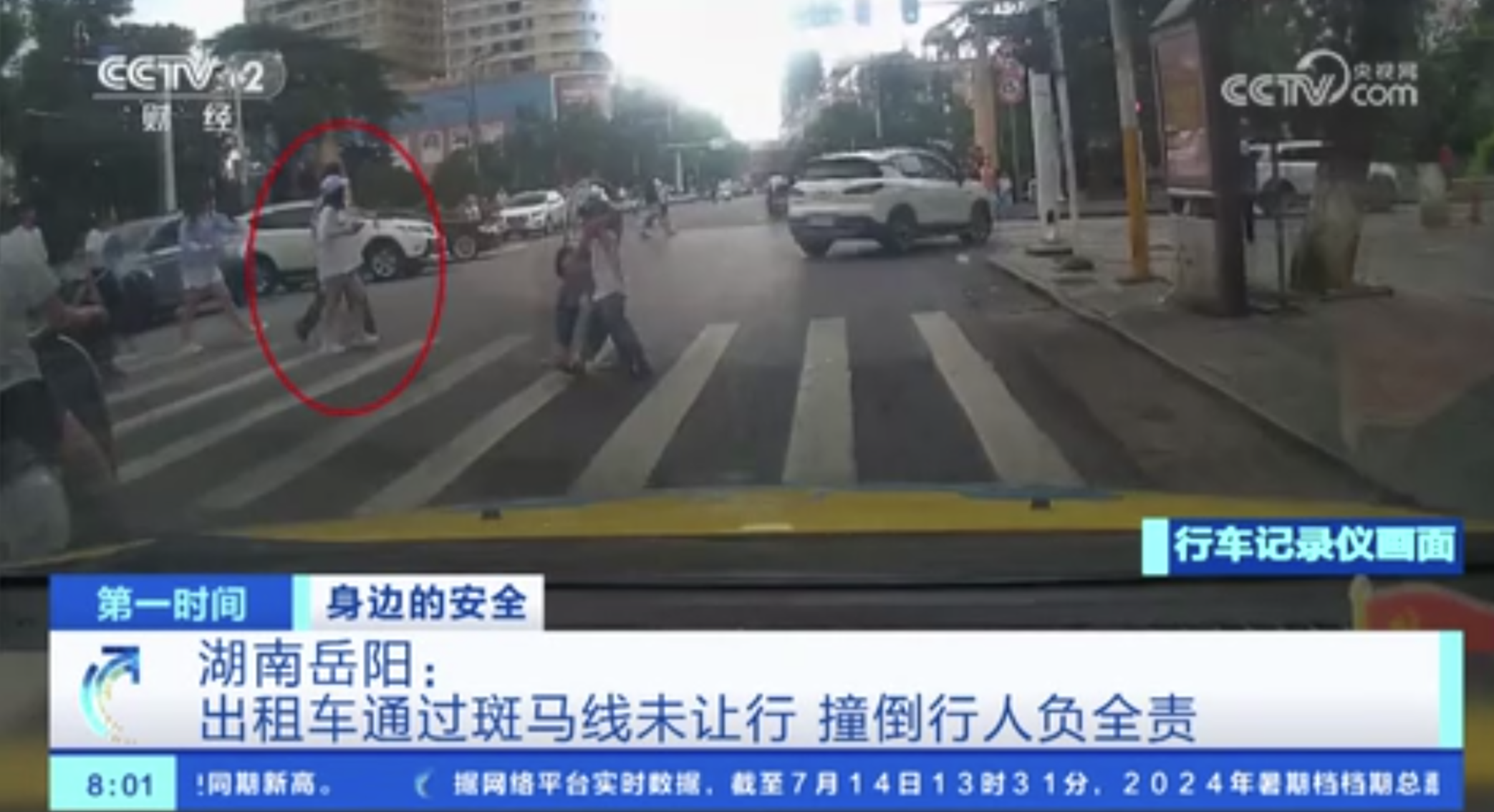 湖南岳陽(yáng):出租車(chē)通過(guò)斑馬線(xiàn)未讓行 撞倒行人負(fù)全責(zé)