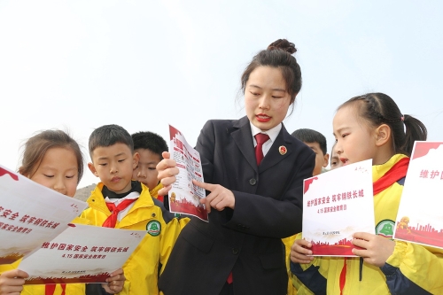 2021年4月13日,江蘇省連云港市灌云縣實(shí)驗(yàn)小學(xué),檢察官在進(jìn)行“全民國(guó)家安全教育日”普法宣傳活動(dòng)。國(guó)家安全日來臨,江蘇省連云港市灌云縣檢察院進(jìn)入校園開展“全民國(guó)家安全教育日”普法宣傳活動(dòng),把國(guó)家安全相關(guān)知識(shí)、維護(hù)國(guó)家安全意識(shí)以及總體國(guó)家安全觀植入學(xué)生們心中。
