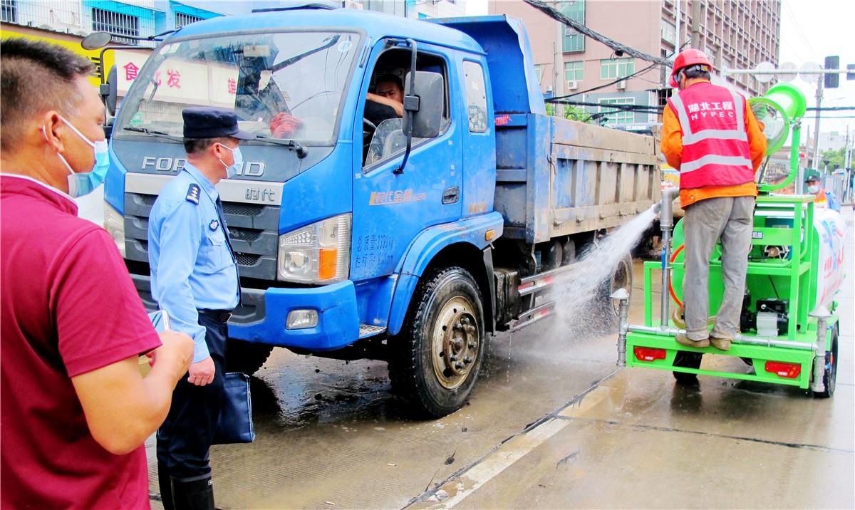 8月12日,湖北省武漢市東西湖區(qū)長(zhǎng)青街革新大道三秀路附近一處防疫隔離點(diǎn),武漢市公安局東西湖區(qū)分局長(zhǎng)青街派出所民警配合相關(guān)部門工作人員對(duì)周邊車輛及環(huán)境進(jìn)行防疫清洗及消殺,確保隔離點(diǎn)防疫安全衛(wèi)生。