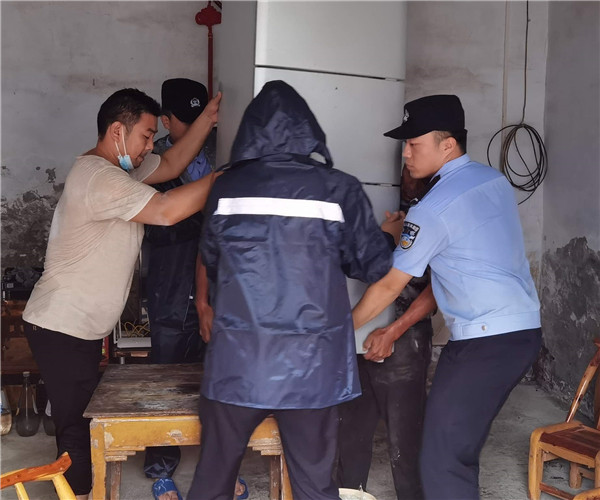 圖為湖北荊門鐘祥民警幫助群眾妥善安置大件財(cái)物。