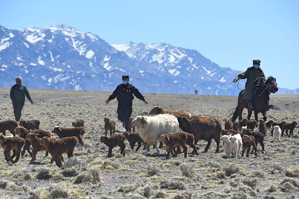 為全力做好轄區(qū)牧民牲畜安全轉(zhuǎn)場,4月11日,新疆昌吉邊境管理支隊(duì)庫甫邊境派出所組織民警組成轉(zhuǎn)場護(hù)牧隊(duì),攜帶日常生活用品和常備使用藥品,及時(shí)解決牧民實(shí)際困難,全程跟進(jìn)安全護(hù)送,幫助牧民搭建帳篷,確保春季牧民安全轉(zhuǎn)場。