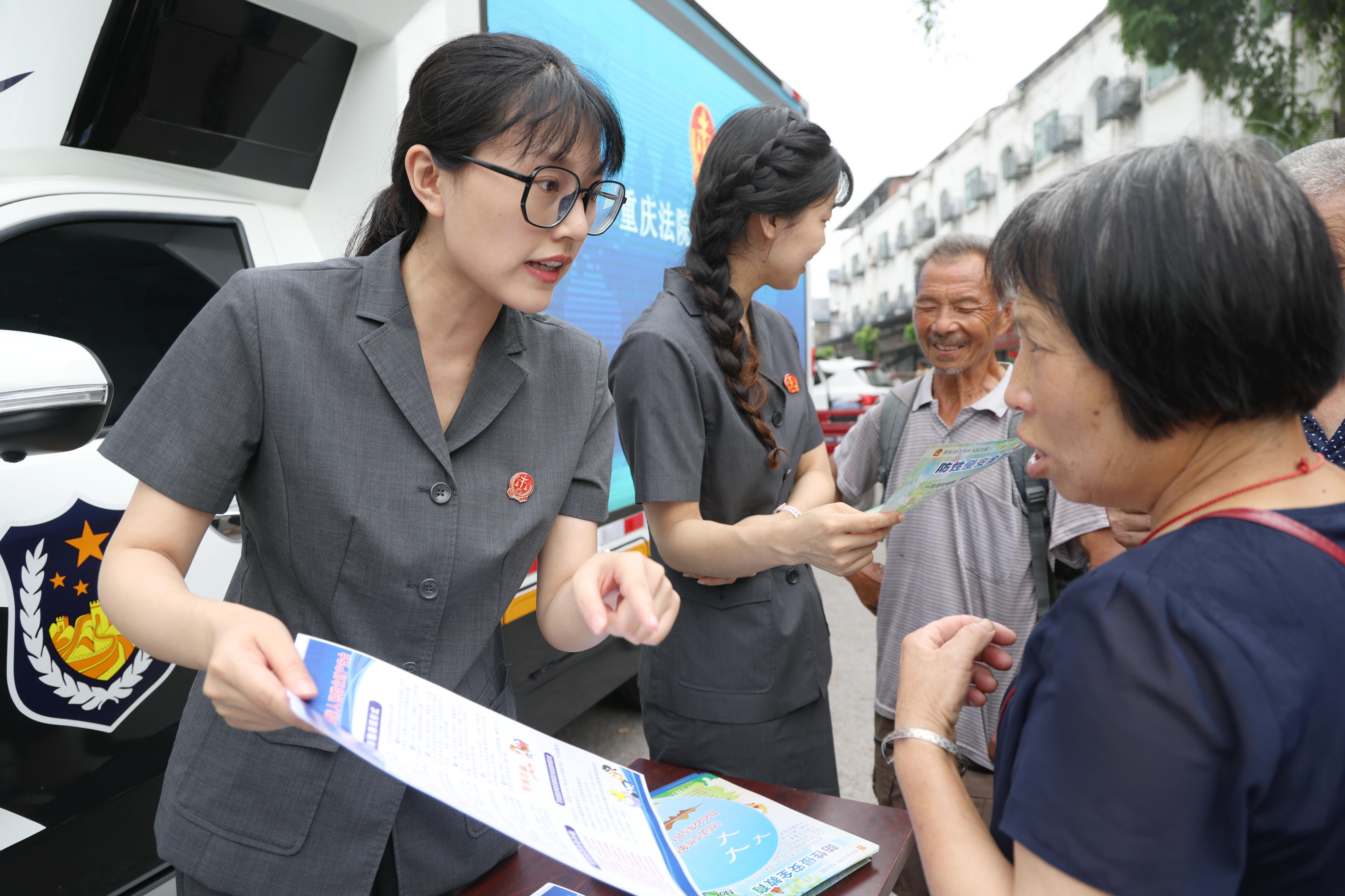 近日,重慶市合川區(qū)人民法院干警將“車(chē)載便民法庭”開(kāi)進(jìn)轄區(qū)沙魚(yú)鎮(zhèn),通過(guò)宣講防詐反詐技巧知識(shí)、溺水事件警示等,提升家長(zhǎng)、學(xué)生暑期安全防范意識(shí)。